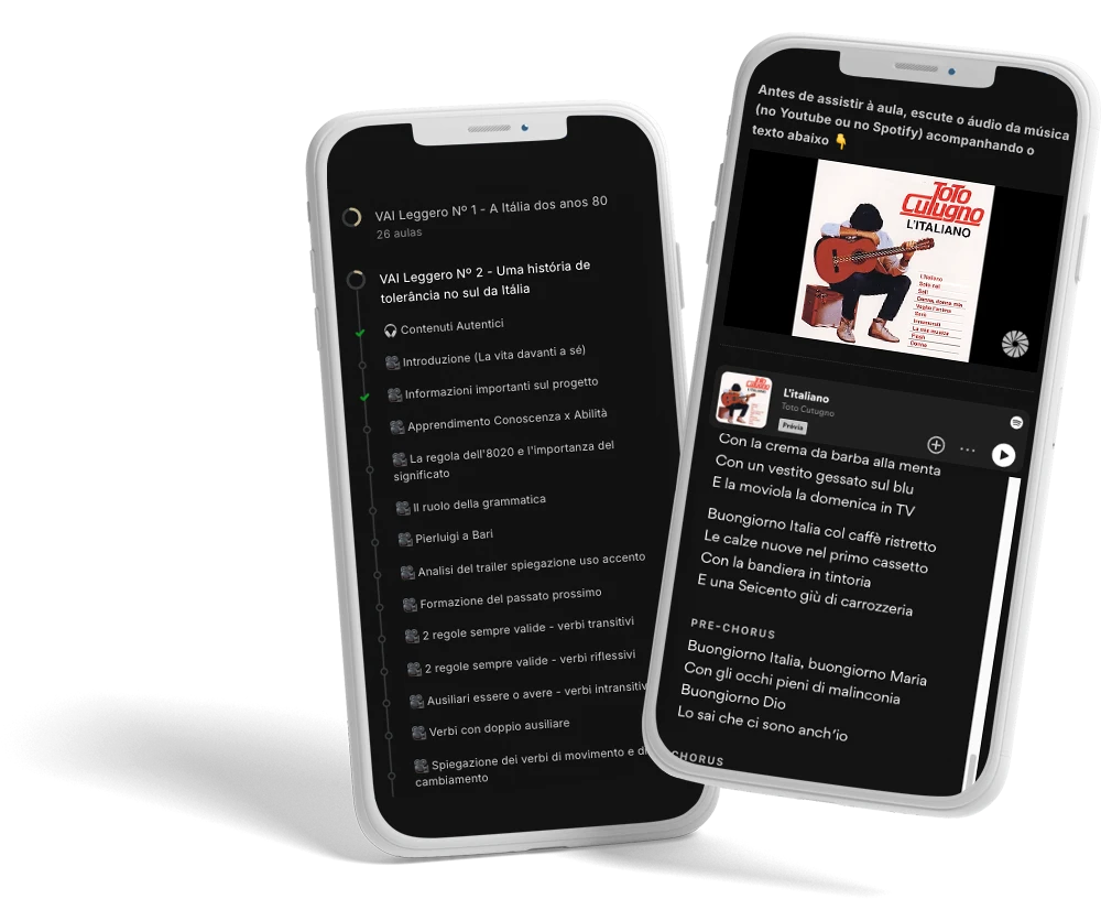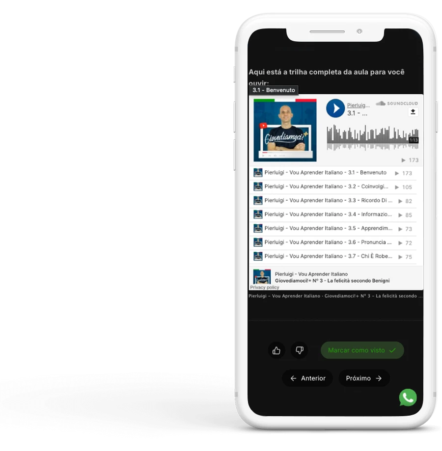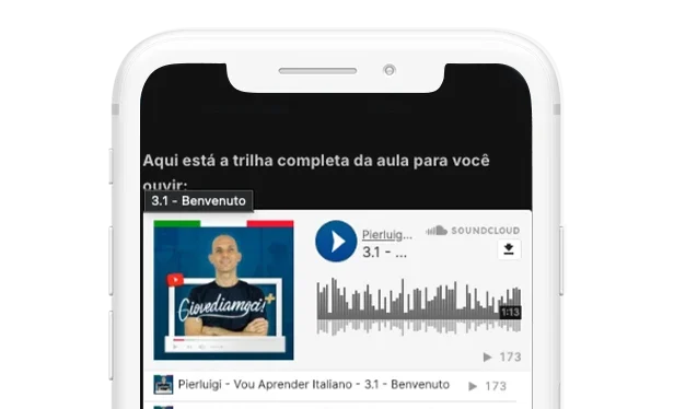 Mergulhe no italiano escutando os conteúdos autênticos e as aulas em italiano ao longo do seu dia no seu celular.