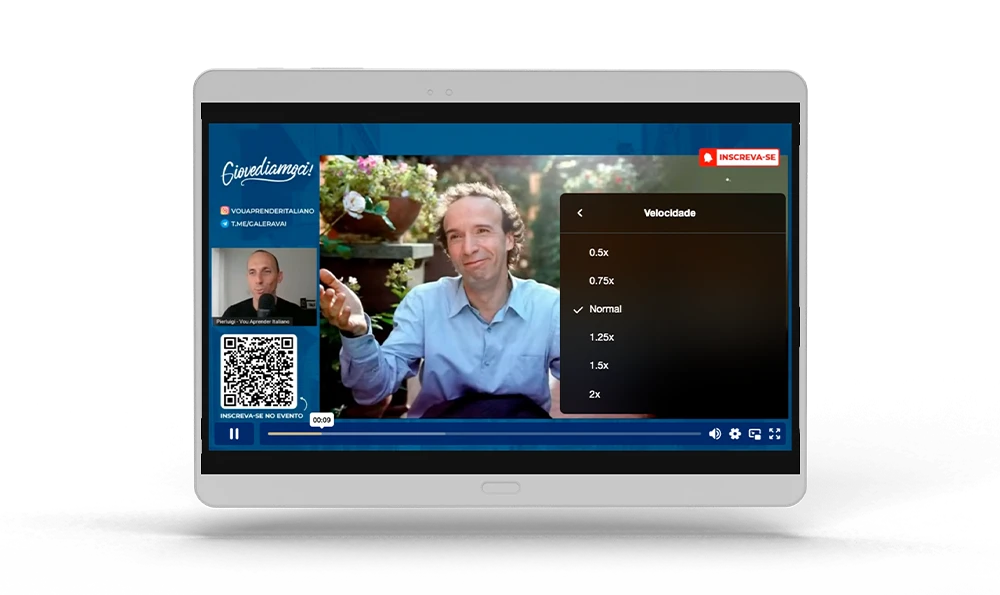 O Pierluigi fala muito rápido ou muito devagar? Reduza ou aumente a velocidade da fala das aulas com base na sua compreensão.