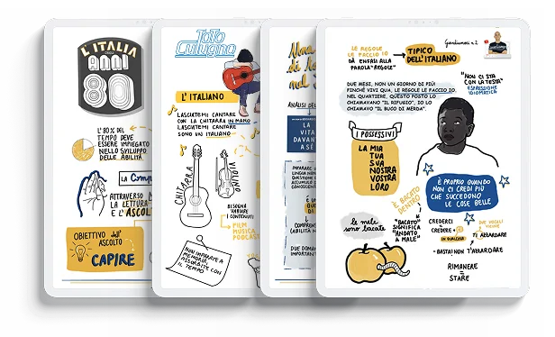Mapas ilustrados das 40 primeiras aulas do Giovediamoci!